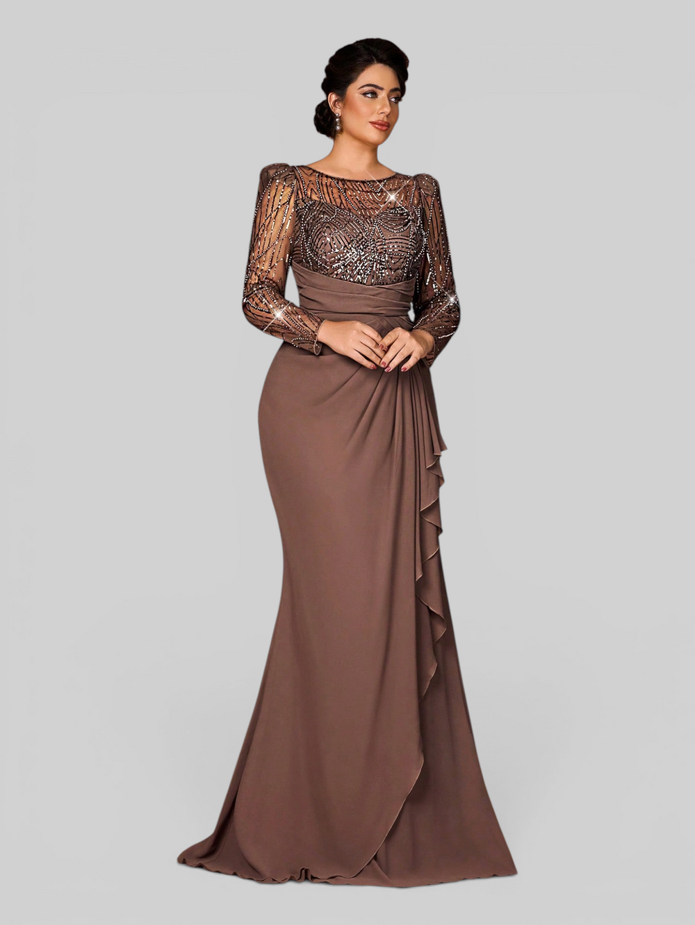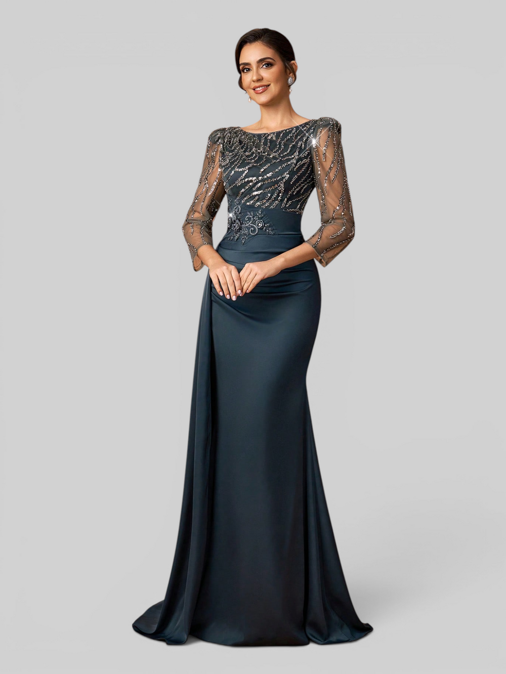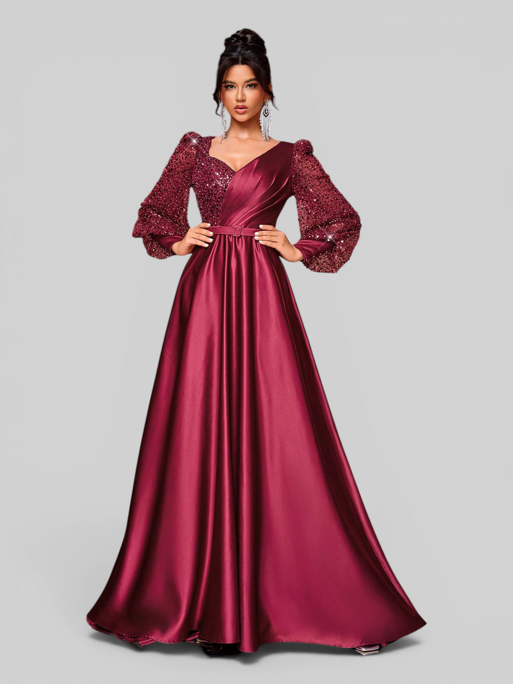 Vestido de Festa Manga Longa Acetinado Paetê Araceli