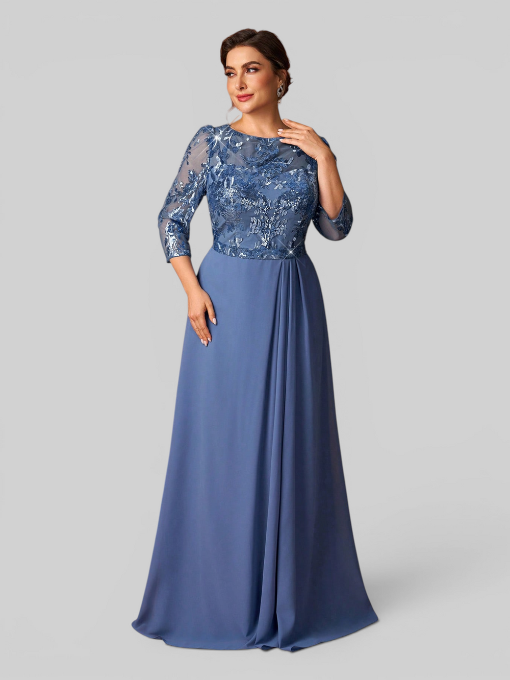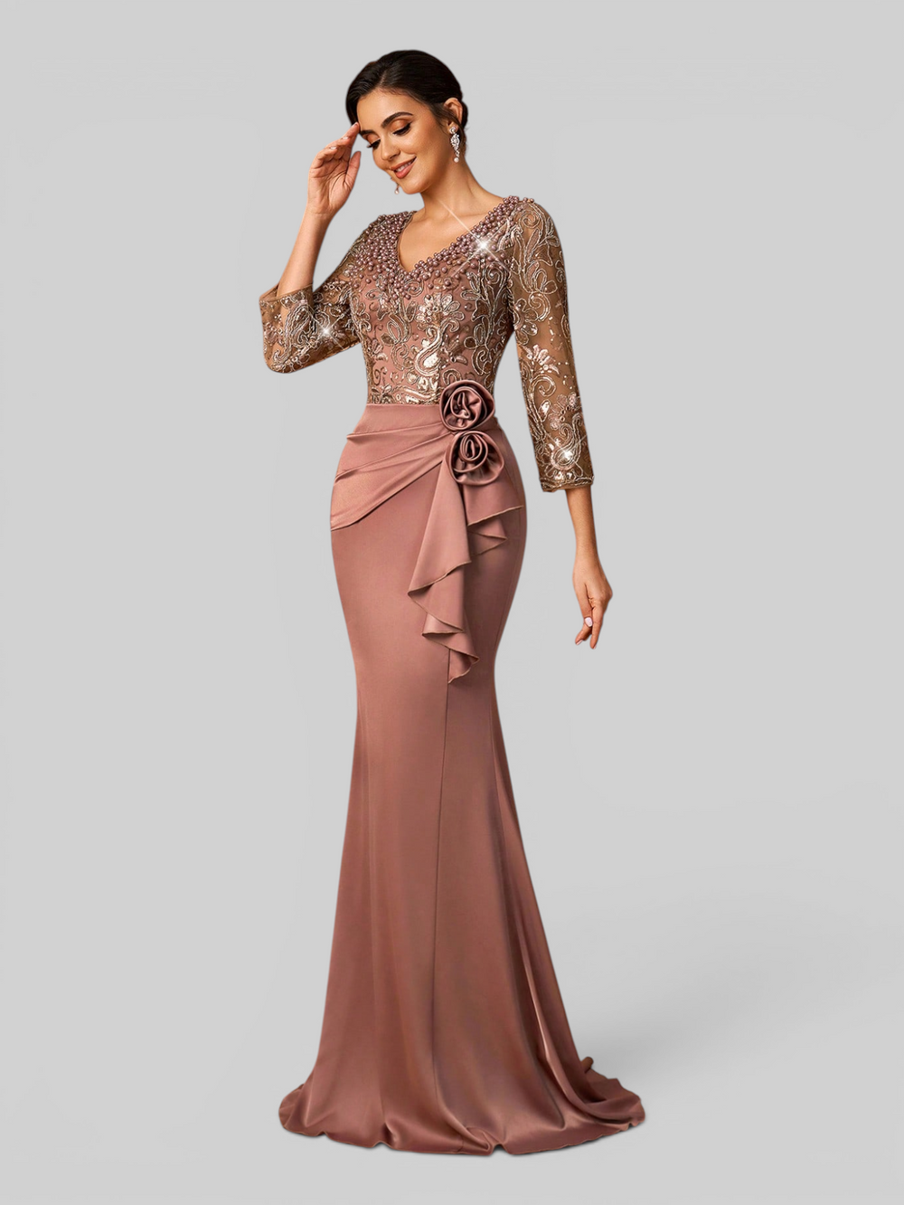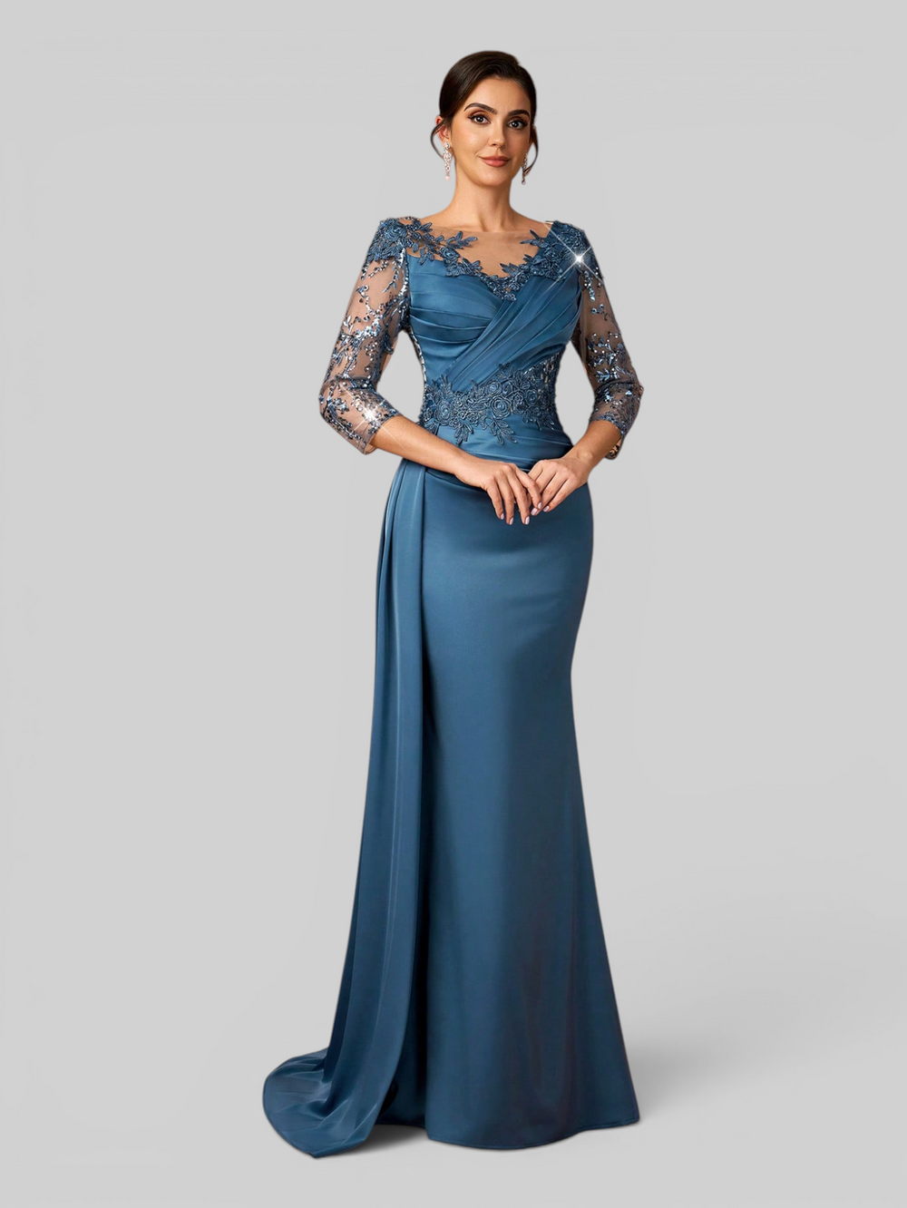 Vestido de Festa Manga Longa Acetinado Paetê Araceli