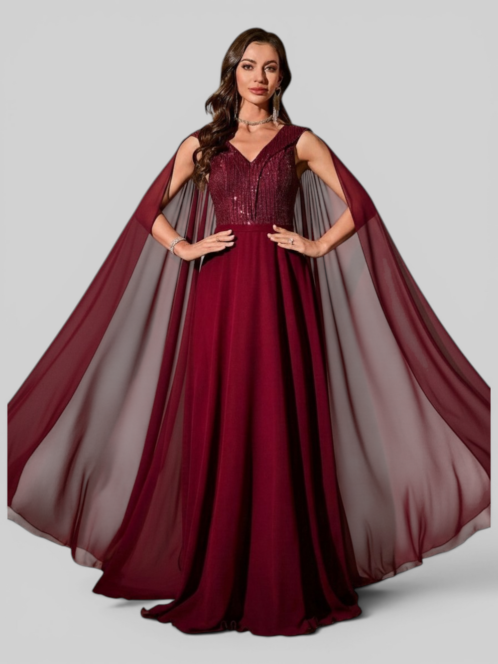 Vestido de Festa Longo com Capa e Fivela Elegante Pamela